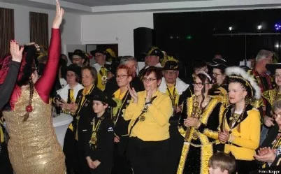 Anschließend brachte das Gardedamenkorps Fanfarista der KG Vicht das Publikum zum Mitsingen und Tanzen. Der „Öcher Ötzi“ trumpfte zur späten Stunde mit Schlagertiteln auf, die Oecher Stadtmusikanten brachten den Saal kurz nach Mitternacht erneut zum Beben.